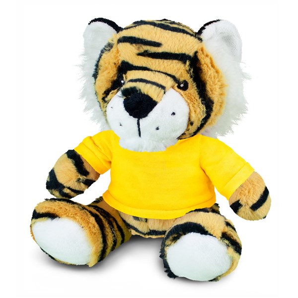 Soft tiger plush toy with embroidered eyes, RPET filling and a polyester t-shirt which is available in eleven colours. Plush animals provide a cute and cuddly branding option and are great for brand recognition and spreading goodwill. They have also been manufactured to meet AS/NZS Safety Toy Standards.