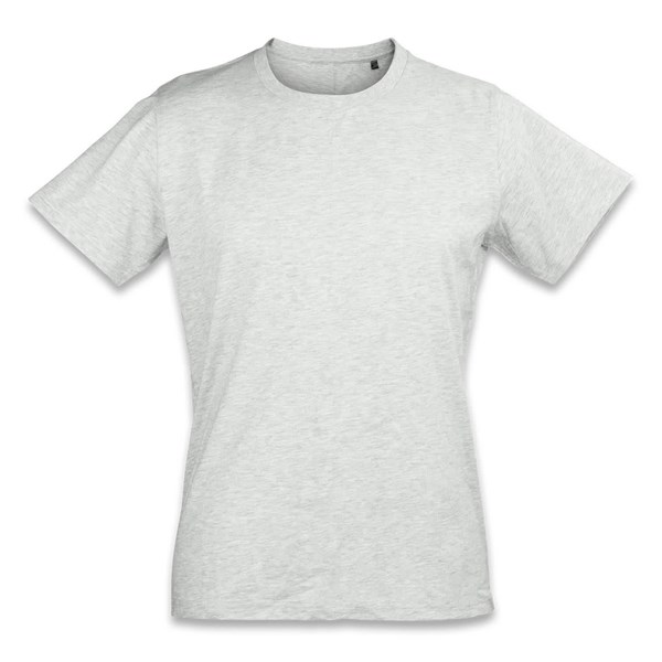 Classic cotton women's t-shirt which features a ribbed rounded collar, short hemmed sleeves manufactured from combed cotton for comfort, a soft feel, and durability. It is available in seven sizes and is crafted from 180gsm, 100% cotton.