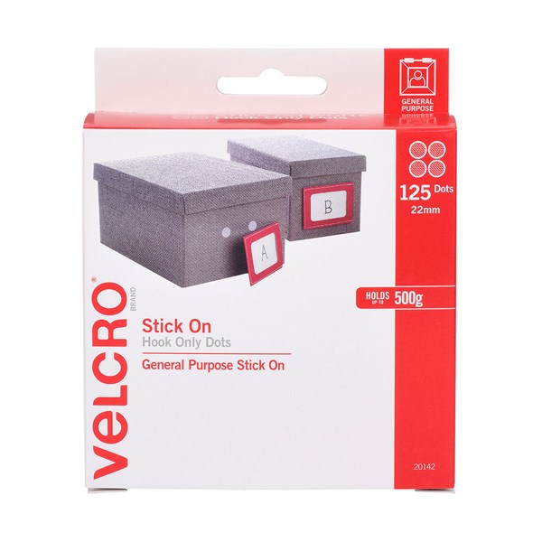 Velcro Stick On Hook Only Dots 125 Dots 22mm White