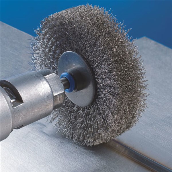 Crimped brushes provide lighter brushing action and superior finish when cleaning, removing rust and paint, smoothing, cleaning fettling from cast seams, light deburring.