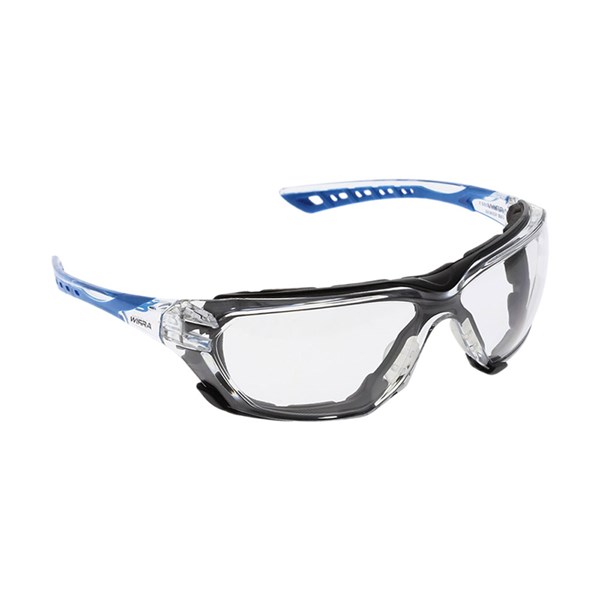 Wirra Carbon Safety Glasses AF Clear Lens Clear/Blue Arms With Foam Gasket