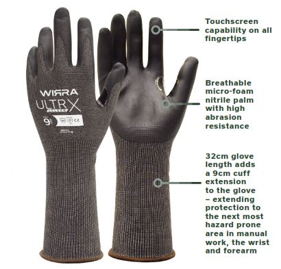 Wirra Cut D UltrX Foam Nitrile Gloves Extended Cuff 12