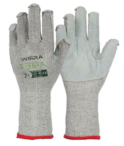 Wirra Terra Cut D Leather Palm Gloves Kevlar Extended Cuff 12