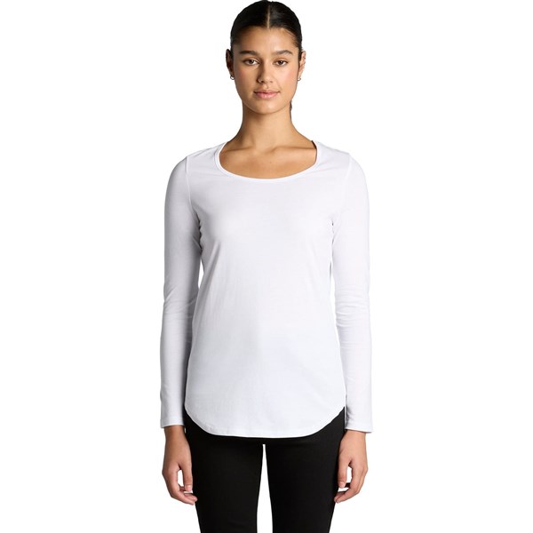 Introducing the Wo's Mali L/S Tee in a regular fit. Made from lightweight 150 GSM 100% combed cotton with 15% viscose in marles, it features a scoop neck, curved hem, and double-needle hems. Preshrunk to minimise shrinkage.