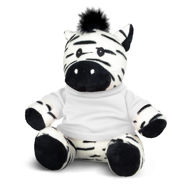 Soft zebra plush toy with embroidered eyes, RPET filling and a polyester t-shirt which is available in eleven colours. Plush animals provide a cute and cuddly branding option and are great for brand recognition and spreading goodwill. They have also been manufactured to meet AS/NZS Safety Toy Standards.